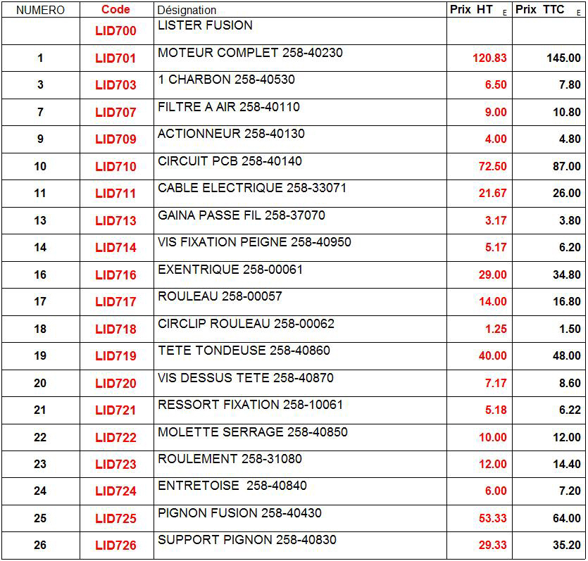 Pour agrandir l'éclaté cliquer sur l'image. Vous trouverez les rèferences des pièces les plus courantes, pour commander les autres pièces nous contacter avec le n° de la pièces. |